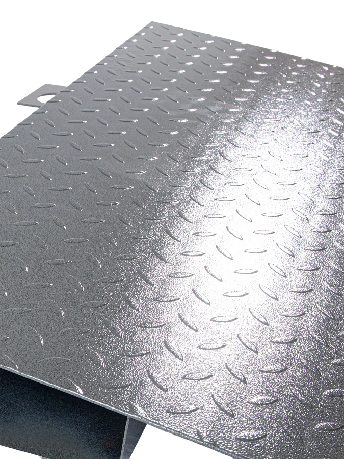 - Крышка грузоприёмной платформы из нержавеющей стали.